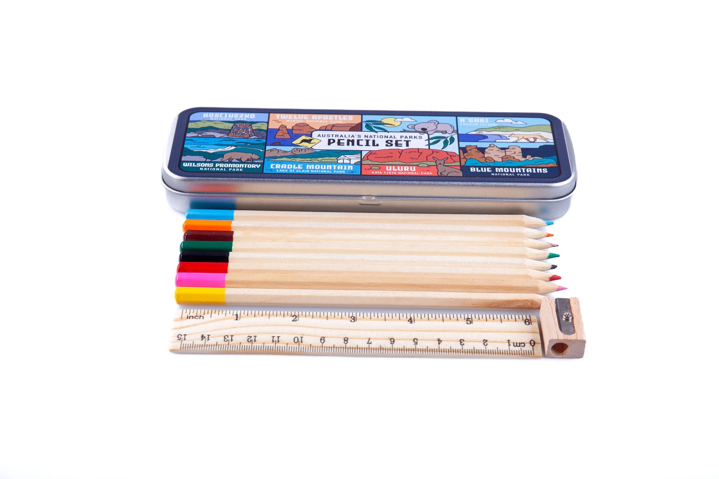 Perfect for school holiday sales, these Australian National Parks pencil sets are practical, eco-conscious, and beautifully designed. The tin features stylised illustrations of Australia’s most-loved parks and landmarks, from Cradle Mountain to Uluru, K’gari, and the 12 Apostles.